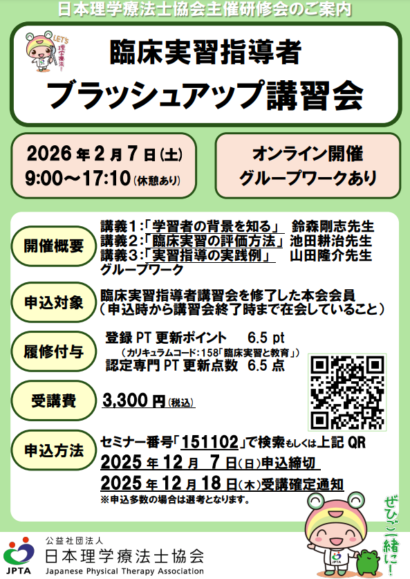 ■受講対象者:臨床実習指導者講習会を受講修了した本会会員
