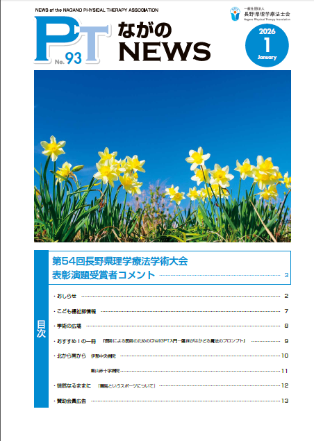 お知らせ ≪新着≫PTながのNEWS No.93 2026-02-02 ホーム 会員の方へ, お知らせ ≪新着≫PTながのNEWS No.93 【業務推進局広報部より】 PTながのNEWS No.93発刊いたしました。 特集:第54回長野県理学療法学術大会表彰演題受賞者コメント 以下より是非ご覧ください。 PTながのNEWS_93号ダウンロード 前の記事 次の記事
