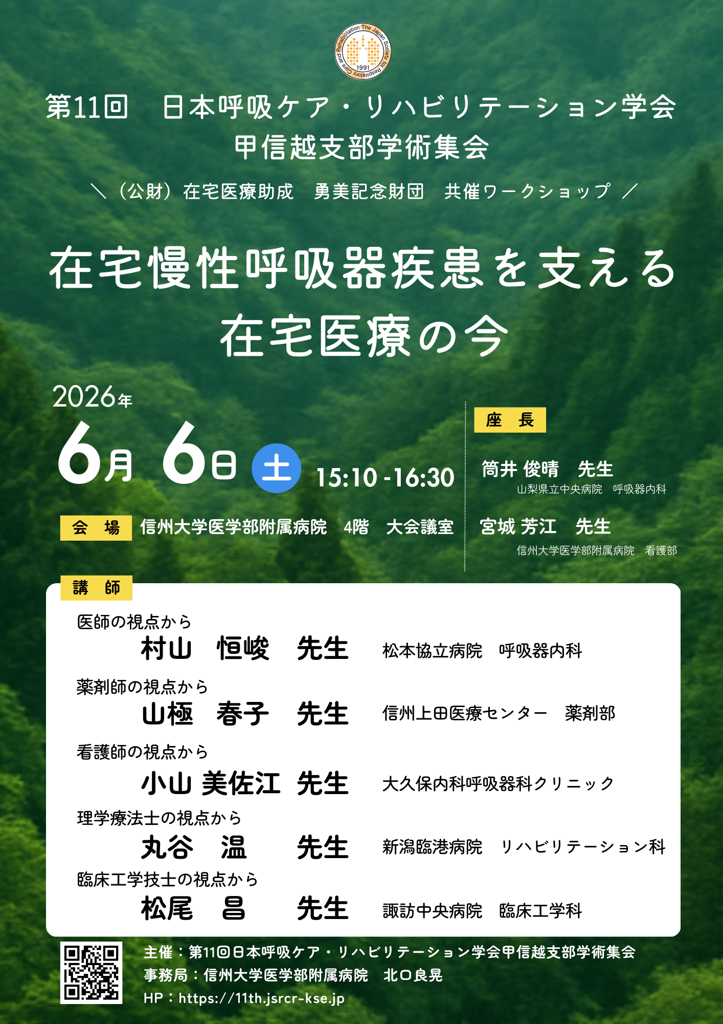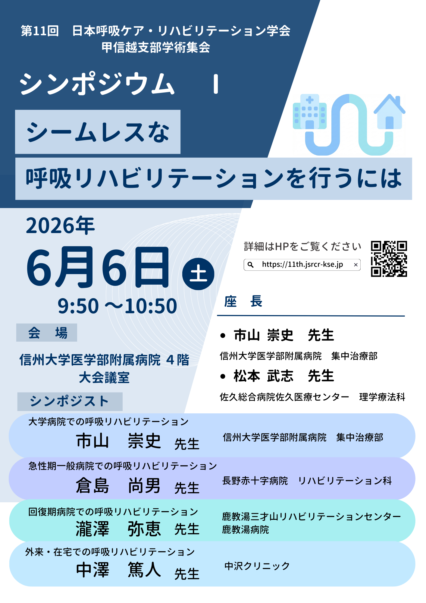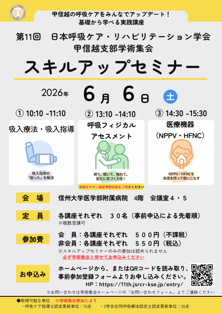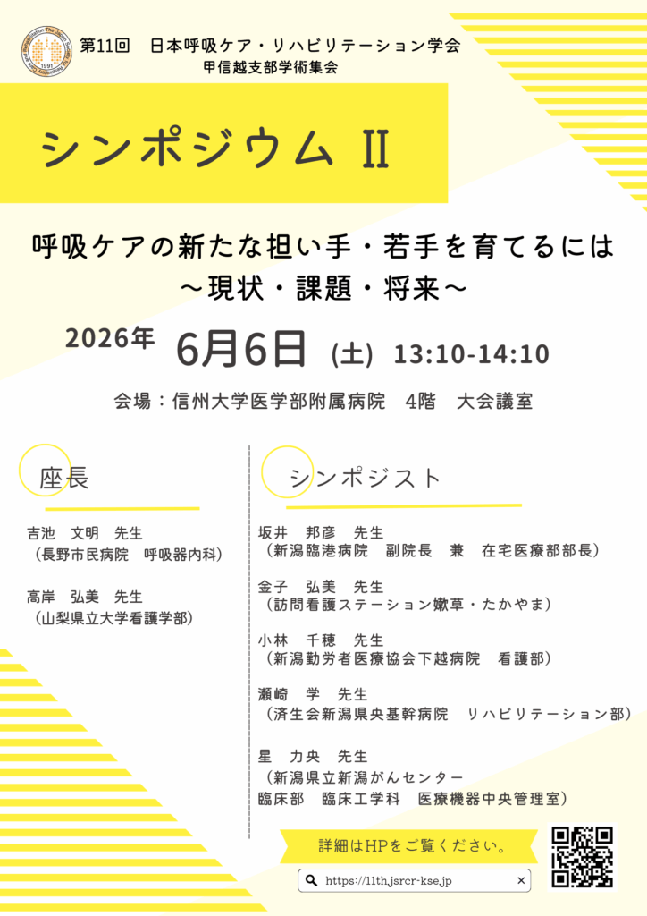 2026年6月6日、信州大学医学部附属病院で開催します第11回 日本呼吸ケア・リハビリテーション学会甲信越支部学術集会のご案内です。